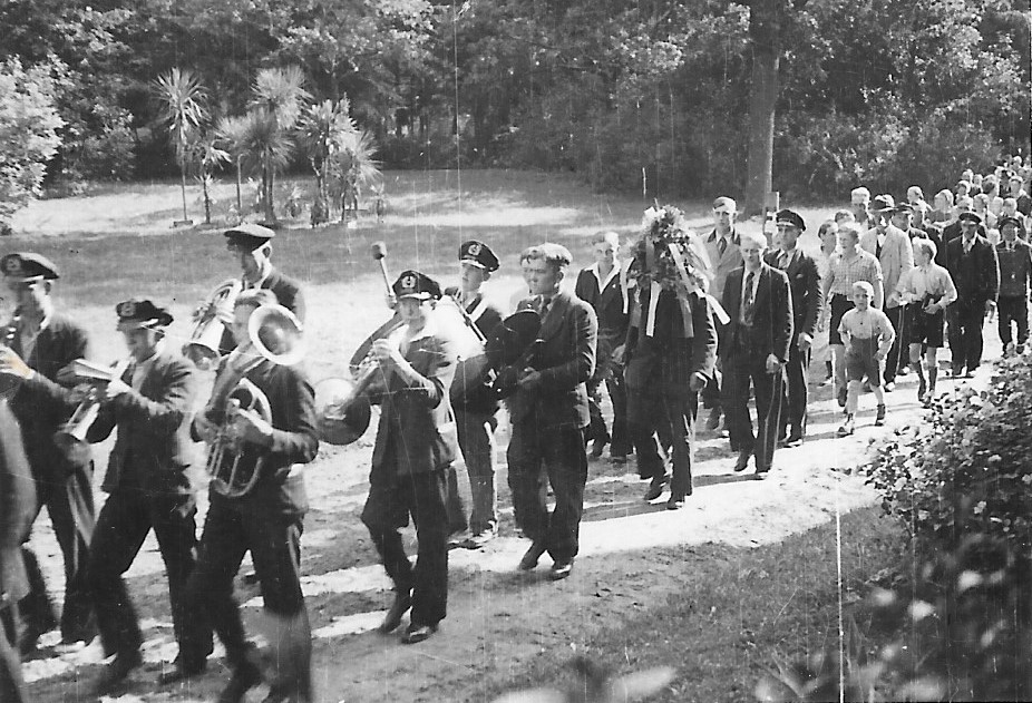 Am Sonntagvormittag versammelten sich alle in Festtagskleidung auf dem großen Wirtschaftshof; Frauen, Männer und Kinder ordneten sich zum Festzug. Voran ging die Musikkapelle Brandenburg (5 Mann), dahinter die große Festkrone, die vom Vorarbeiter auf einer Stange getragen wurde.