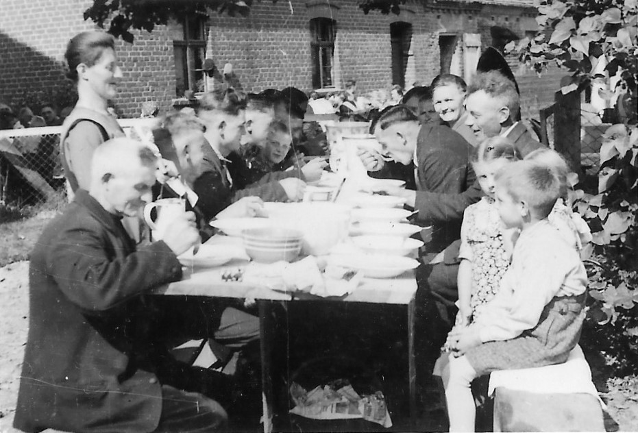 Das Menü: Biersuppe mit zuckerbestreuten Schaumklößen, Scheine- und Rinderbraten, Rotkohl und Kartoffeln, Kompott. Jeder durfte essen soviel er konnte. Dann ging eine Familie nach der anderen nach Hausen zur Mittagsruhe.