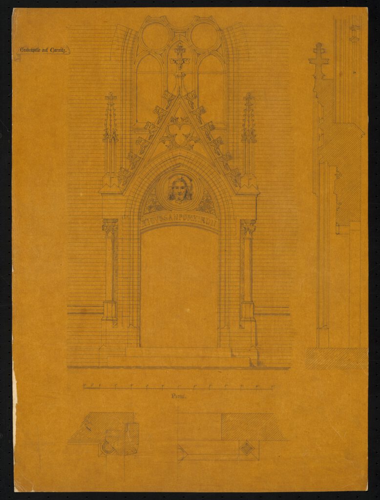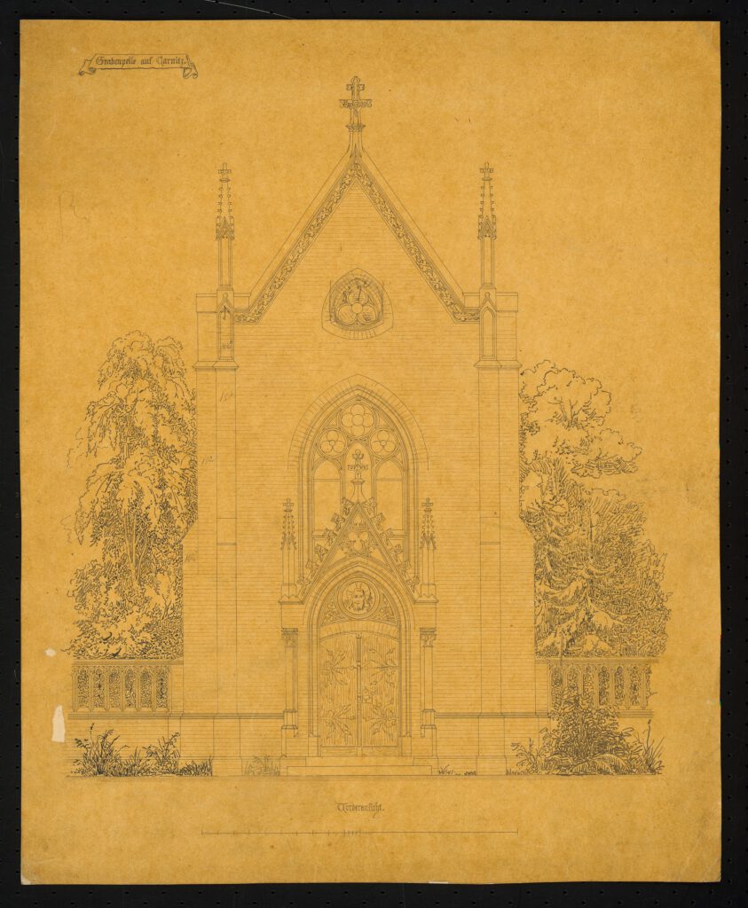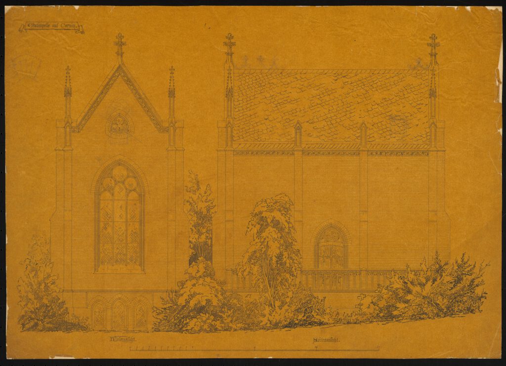 Entworfen wurde die Grabkapelle durch den Berliner Architekten Gustav Knoblauch (1833-1916). Die Handzeichnungen für den Bau der Grabkapelle (Mausoleum) befinden sich zum Download im Architekturmuseum in Berlin (https://architekturmuseum.ub.tu-berlin.de/index.php?p=51&O=236198).