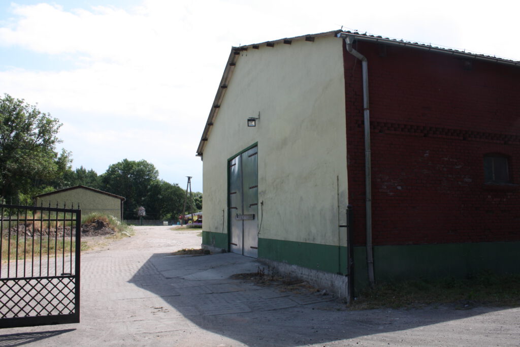 Bild rechts: Blick an der Scheune vorbei auf den ehemaligen Gutshof